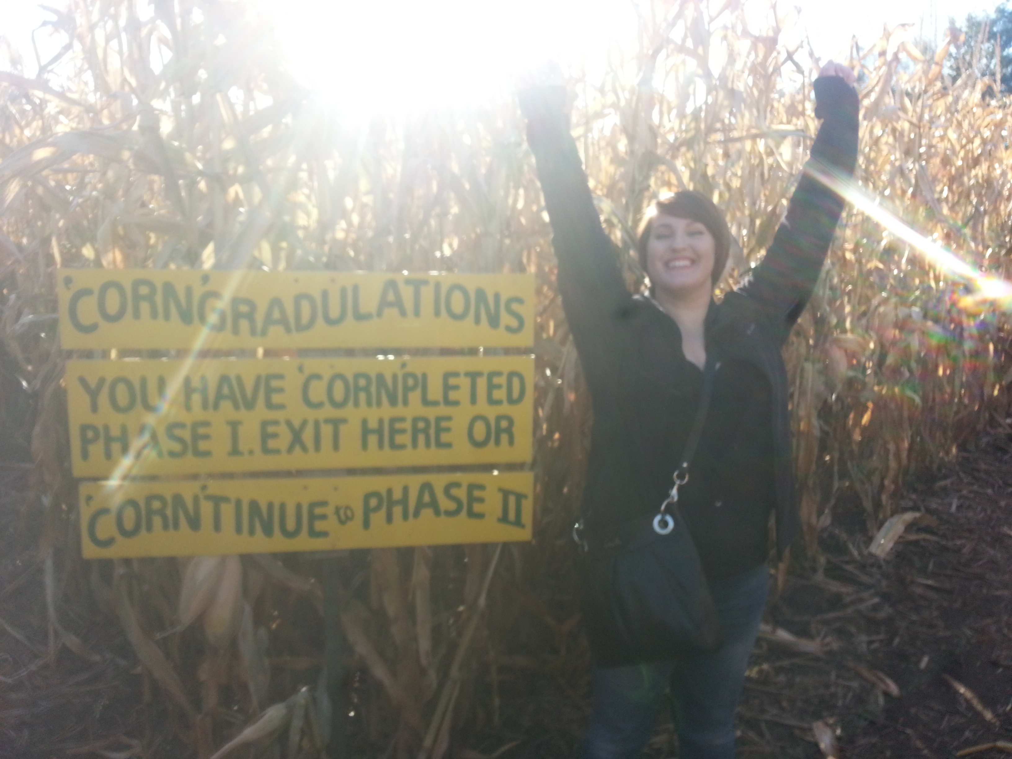 We ended up making it out in 59 minutes despite getting lost and wearing terrible shoes. I can honestly say we made it and for that I am SO glad! I can now say that I have conquered about 15 acres of corn maze! Go me~!