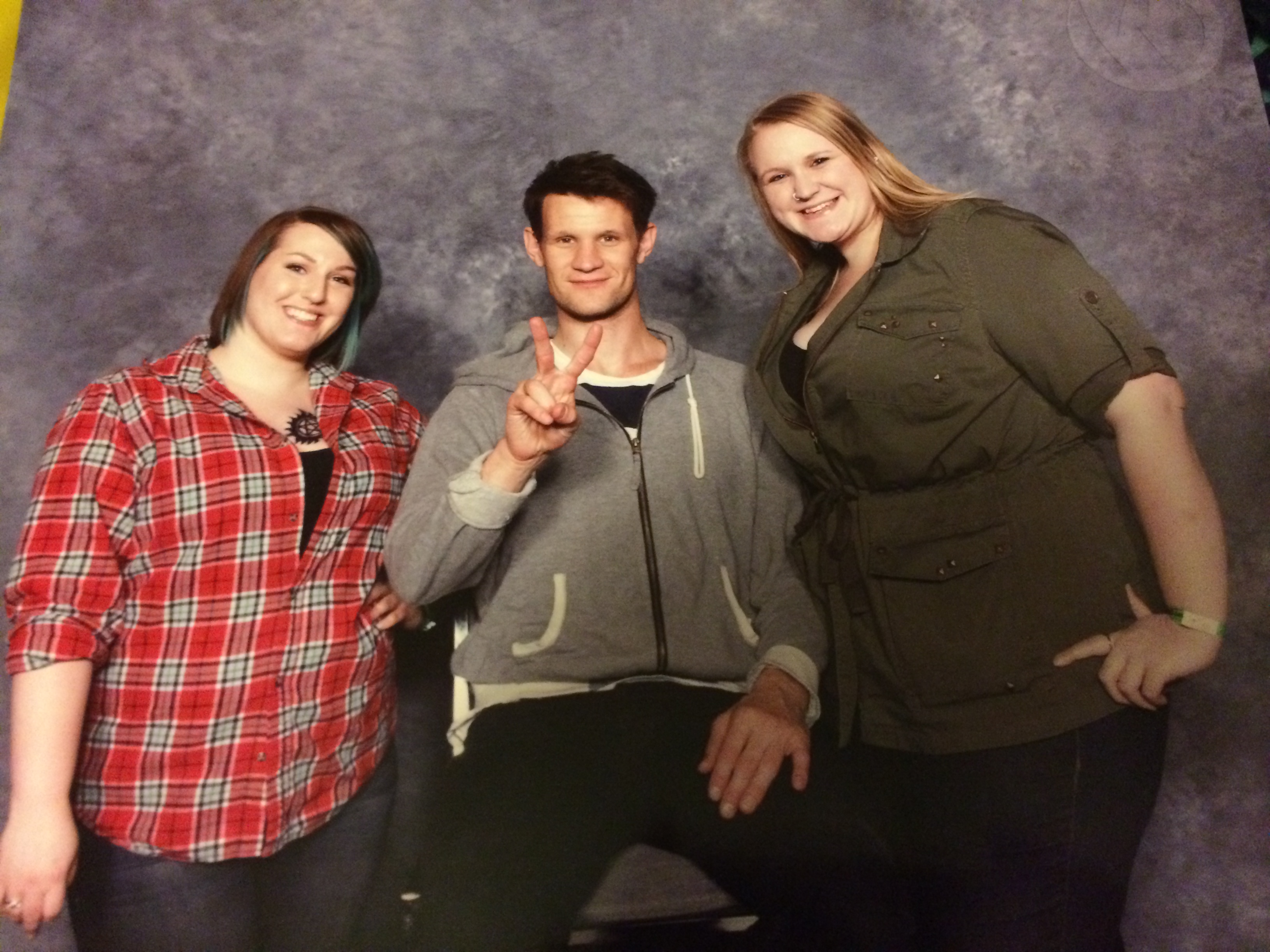 the one and only Matt Smith! Yep the most recent Doctor Who! As a Whovian I had to do what I could to meet him, so Megan and I split the cost of his photo op! It was totally worth it! I think when I walked in I said something like “Oh my goodness you’re real!” to which he said, “Yes I am!” with that ridiculously cute cheesy grin of his! He also complimented Megan’s teal hair, so that’s kind of cool too.